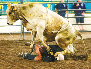 這位名叫布賴恩·尤班克斯的騎手已頭發(fā)花白,當(dāng)日表演中他騎一頭公牛剛出場,還沒來得及向觀眾揮手致意就被牛掀翻在地。這頭牛四蹄凌空飛起腳踹向布賴恩的頭部和軀干,一時(shí)驚慌失措的布賴恩趕緊用雙手保護(hù)住頭部,看臺(tái)上的觀眾更是陷入恐慌。一旁的工作人員和其他騎手見狀,趕忙跑過來驅(qū)趕公牛。令人不可思議的是,布賴恩竟然還掙扎著站了起來,被前來幫他的人帶離競技場。經(jīng)醫(yī)生檢查,布賴恩只是輕微擦傷和局部皮膚發(fā)腫,并無大礙。