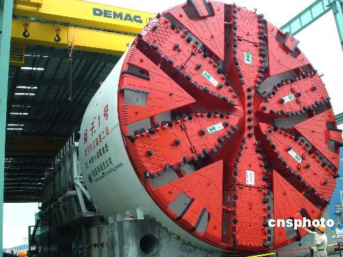 五月二十日上午,隨著“揚子二號”盾構機的巨型刀盤轟鳴呼嘯著沖破最后一環(huán)冷凍層,中國鐵建十四局集團承建的國家“八六三”計劃科技示范工程、代表當今中國水下隧道建設最高水準之一的南京長江隧道左線順利貫通。南京長江隧道位于南京長江大橋和長江三橋之間,總長達到五千八百五十三米,設計為雙向六車道,行車時速八十公里,其中左右線盾構隧道總長超過六千米,工程總投資近四十億元人民幣。它是迄今為止中國長江流域上工程技術難度最大、地質條件最復雜、技術性難題和挑戰(zhàn)最多的世界級越江隧道工程。南京長江隧道施工采用了兩臺目前世界上最先進的泥水平衡盾構機掘進,刀盤直徑為14.93米,相當于5層樓高,超過了目前世界上已經建成的最大直徑隧道——荷蘭的格林哈特隧道。中新社發(fā) 李佩山 攝