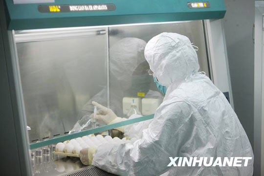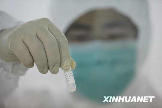 6月8日,來自美國的甲型H1N1流感疫苗生產(chǎn)用毒株NYMCX-179A,從美國運(yùn)抵北京,并經(jīng)過通關(guān)、檢驗(yàn)檢疫等手續(xù)后,送抵北京科興生物制品有限公司。已經(jīng)完成疫苗臨床研究工作的北京科興當(dāng)晚啟動了毒株種子批的制備工作,這標(biāo)志著甲型H1N1流感疫苗的批量生產(chǎn)正式啟動,并有望于7月底生產(chǎn)出首批疫苗。 邢廣利 攝