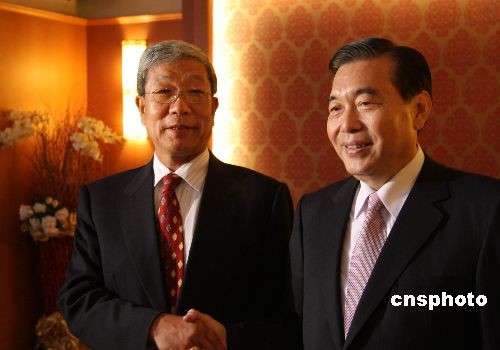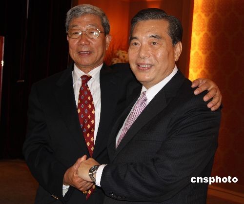 大陸海峽兩岸經(jīng)貿(mào)交流協(xié)會會長李水林率領(lǐng)“兩岸經(jīng)貿(mào)促進(jìn)考察團(tuán)”到臺灣進(jìn)行采購。圖為6月1日,李水林(左)與臺灣外貿(mào)協(xié)會董事長王志剛(右)共同接受采訪。李水林說:“我們是多年的好朋友、好兄弟。我長兩歲,稱大哥,志剛小兩歲,稱老弟。我們喝酒,志剛要先喝兩杯!敝行律绨l(fā) 耿軍 攝