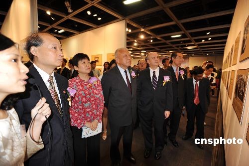 七月二十日傍晚,“中美建交三十周年圖片展”在香港開(kāi)幕。全國(guó)政協(xié)副主席董建華(左四)、香港特區(qū)政府司長(zhǎng)唐英年(右二)、外交部駐港特派員公署署理特派員詹永新(左二)、中國(guó)人民對(duì)外友協(xié)副會(huì)長(zhǎng)李小林女士(左三)、美國(guó)駐香港總領(lǐng)事唐若文(右三)等貴賓出席并觀看展覽。中新社發(fā) 鄭祚聲 攝