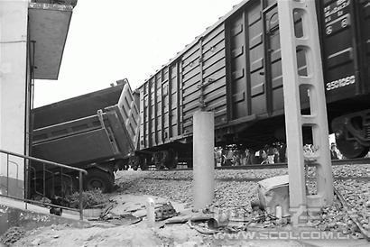 昨(15)日凌晨5時(shí)過(guò),一輛出城貨車途經(jīng)金牛區(qū)老沙西線西環(huán)線興盛鐵路道口時(shí),與左邊飛馳而來(lái)的火車相撞,貨車駕駛員當(dāng)場(chǎng)死亡。是否由于當(dāng)晚道口值班人員失職,造成道路兩旁的欄桿沒(méi)有放下來(lái),成為死者家屬質(zhì)疑的主要焦點(diǎn)。