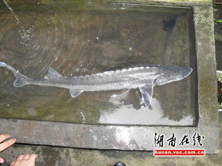 “耒河里發(fā)現(xiàn)了野生的中華鱘!兩天內(nèi)連續(xù)兩條被卡在水電站的閘門里!苯眨珀柧W(wǎng)友黃市鎮(zhèn)村民李金鍵向記者爆料:在耒陽市耒河段發(fā)現(xiàn)了中華鱘,并稱此事在當(dāng)?shù)匾鹆瞬恍〉恼痼@。