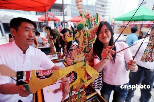 6月12日,遼寧“非遺”傳承人在沈陽遼寧大劇院廣場(chǎng)向觀眾展示自己的絕活。6月13日是中國(guó)第四個(gè)“文化遺產(chǎn)日”,遼寧省將舉辦規(guī)模大、項(xiàng)目多、內(nèi)容豐富的非物質(zhì)文化遺產(chǎn)集中展示活動(dòng),將采取實(shí)物展示、傳統(tǒng)技藝現(xiàn)場(chǎng)表演等形式,讓傳承人與觀眾零距離接觸。中新社發(fā) 羅瀾 攝