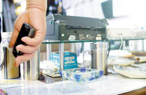 這家被小偷光顧的商店,在南開區(qū)白堤路上的一家音響廣場內(nèi)。商店的柜臺和辦公桌都安置在了長方形的店鋪內(nèi)。因?yàn)閷Yu監(jiān)控?cái)z像裝置,所以這家店內(nèi)裝滿了大大小小的攝像頭,而且這些攝像頭還全部運(yùn)轉(zhuǎn)著,尤其是放貴重物品的辦公桌附近,就安上了兩個(gè)攝像頭。商店的工作人員說,發(fā)覺手機(jī)丟失后,就立即打開保存下來的錄像,手機(jī)丟失的過程全被拍了下來。