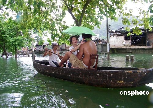 7月6日,受廣西上游普降暴雨影響,西江廣東境內(nèi)封開縣江口水位急速上漲,到下午4時止,封開縣城江口水位達到19.32米,超出警戒線2.2米,西江水已淹入江口鎮(zhèn)部分地區(qū),并仍以6厘米/小時的速度上漲,肇慶高要水文站稱,預(yù)計7日傍晚將迎來今年西江首個洪峰,西江水位將超過9米。目前西江肇慶段沿線正嚴(yán)陣以待備戰(zhàn)洪災(zāi)。中新社發(fā) 黃耀輝 攝