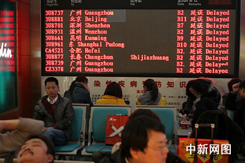 在成都雙流機場,受濃霧襲擊,大量航班被迫延誤,數(shù)千名旅客滯留機場。(完)