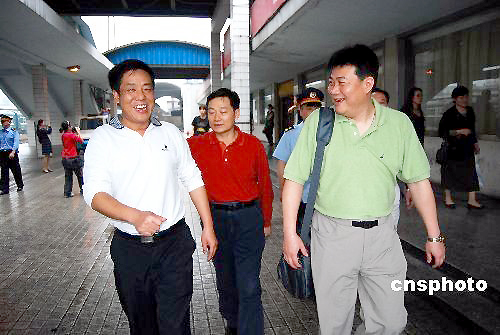 2009年5月25日,中國(guó)女排國(guó)家隊(duì)結(jié)束為期50天的集訓(xùn)離開(kāi)湖南郴州,開(kāi)始新的征程。當(dāng)天,新一屆中國(guó)女排在主教練蔡斌率領(lǐng)下乘坐K82次列車(chē)奔赴河南漯河市,參加即將于5月29日至31日舉行的2009中國(guó)國(guó)際女排精英賽。這是新一屆中國(guó)女排國(guó)家隊(duì)的首度亮相,屆時(shí)將有中國(guó)、古巴、多米尼加、土耳其四國(guó)的女排精英獻(xiàn)上精彩賽事。 中新社發(fā) 賀茂峰 攝