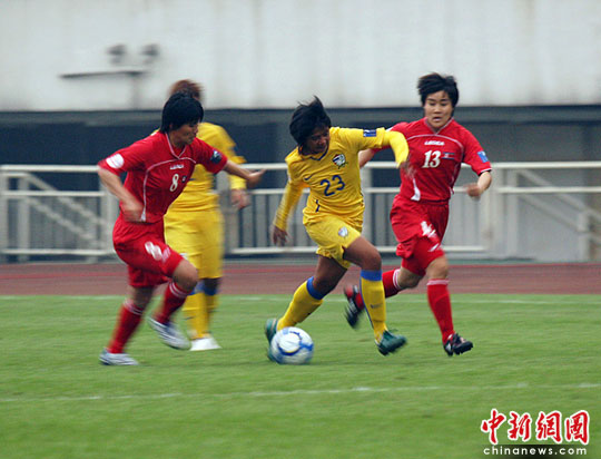 中新網(wǎng)成都5月20日電(記者劉忠俊 楊杰 劉賢)5月20日下午,2010年女足亞洲杯A組比賽在成都體育中心拉開戰(zhàn)幕,亞洲勁旅朝鮮女足迎戰(zhàn)泰國女足。開場(chǎng)3分多鐘朝鮮隊(duì)17號(hào)前鋒全明花率先攻進(jìn)第一球,隨后10號(hào)前鋒金英愛再進(jìn)一球,上半場(chǎng)朝鮮隊(duì)以2:0暫時(shí)領(lǐng)先。今晚日本女足將與緬甸女足展開對(duì)決。