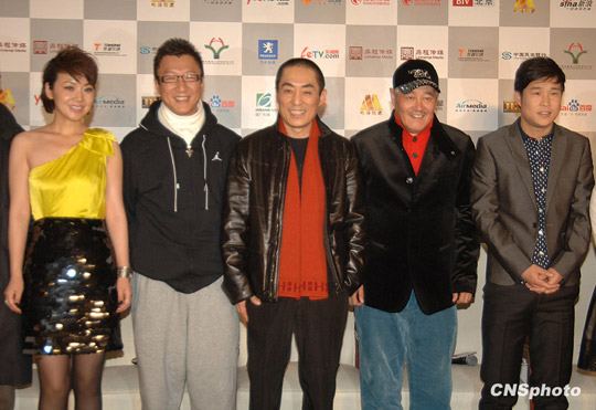 12月9日下午,張藝謀喜劇新作《三槍拍案驚奇》在京舉行首映發(fā)布會,導演張藝謀、大病初愈的趙本山攜孫紅雷、小沈陽、閆妮、倪大洪、程野、毛毛全明星主創(chuàng)團隊齊齊亮相。現(xiàn)場張藝謀、趙本山、小沈陽搞笑不斷,引得爆笑連連,上演了一出戲外喜劇。趙本山首度回應了花兩億購買私人飛機一事,稱還沒有定下來。張藝謀表示會和“趙家班”繼續(xù)深度合作,并且豪言預計未來的中國電影單部影片票房可能達到2億美元。圖為張藝謀、趙本山、小沈陽成為“笑彈”。中新社發(fā) 李學仕 攝