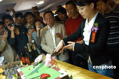 2007年10月18日,南京丁俊暉臺球俱樂部正式營業(yè),這是丁俊暉父子經營的自云南昆明之后第二家專業(yè)級臺球俱樂部。該俱樂部共有33張國際比賽標準球桌,并另設兩張專業(yè)球臺,其中一張供丁俊暉本人訓練專用,俱樂部營業(yè)面積約1600平方米。開業(yè)典禮上,被譽為“九球天后”的潘曉婷接受了南京媒體采訪,并現場為俱樂部開業(yè)切蛋糕以示慶賀。中新社發(fā) 王躍武 攝