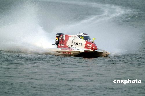10月20日,2007F1摩托艇世錦賽中國(guó)深圳大獎(jiǎng)賽在深圳南山后海開賽。目前排名2007賽季積分榜首位的薩米·瑟里奧繼續(xù)表現(xiàn)神勇,兩輪排位賽結(jié)束后,以單圈36.66秒的最好成績(jī)位列第一;高迪奧·卡佩里尼緊隨其后,以36.81秒的成績(jī)屈居第二。按照國(guó)際慣例,當(dāng)天下午進(jìn)行的是排位賽和桿位賽,比賽吸引了數(shù)萬觀眾到場(chǎng)觀看。中新社發(fā) 吳峻 攝