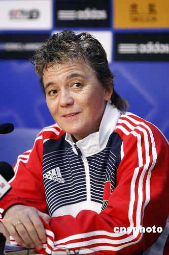 十月二十八日,中國足協(xié)在北京召開新聞發(fā)布會,宣布前法國女足主帥伊麗莎白正式接替多曼斯基的帥位,擔任中國女足主教練。她的合約期將持續(xù)到2008年奧運會結束。伊麗莎白在發(fā)布會上發(fā)布了就職演說。中新社發(fā) 盛佳鵬 攝