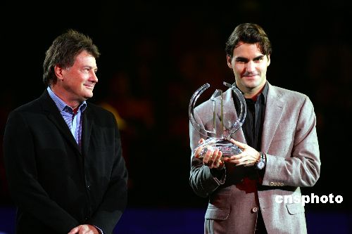 11月13日,ATP在上海舉行儀式,由ATP主席德維利爾斯先生親自將ATP年終世界第一的獎杯頒給費(fèi)德勒,這也是費(fèi)德勒自2004年之后連續(xù)第4年獲得年終世界第一。中新社發(fā) 湯彥俊 攝