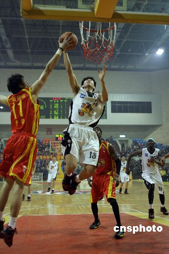 11月16日晚,在山西太原進(jìn)行的2007-2008賽季CBA聯(lián)賽第9輪角逐中,浙江廣廈隊(duì)以108:96客場戰(zhàn)勝山西中宇隊(duì)結(jié)束連敗,中宇隊(duì)則遭遇五連敗。根據(jù)賽程安排,山西中宇第10輪的對(duì)手將是浙江萬馬,而浙江廣廈將對(duì)陣北京金隅。中新社發(fā) 張?jiān)?攝