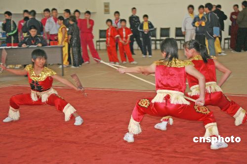 2007年11月19日,為期3天的“2007中國安徽首屆傳統(tǒng)武術(shù)大會暨武術(shù)套路國際邀請賽”在安徽省黃山市舉行。本次比賽分為傳統(tǒng)武術(shù)和武術(shù)套路兩個部分,其中有個人單項(xiàng)、個人全能比賽;有傳統(tǒng)拳術(shù)、傳統(tǒng)器械、對練3個項(xiàng)目。來自中國、美國、澳大利亞、波蘭、日本、新加坡、加蓬、越南、菲律賓、古巴和中國香港等十多個國家和地區(qū),共有43支代表隊(duì)的439名運(yùn)動員參加比賽。中新社發(fā) 方也廣德 攝