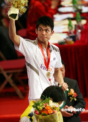 十二月二日,頭號種子林丹在二零零七中國香港羽毛球超級賽決賽中以二比一戰(zhàn)勝馬來西亞名將李宗偉,奪得冠軍。中新社發(fā) 武仲林 攝