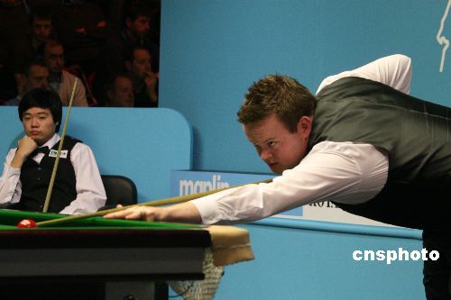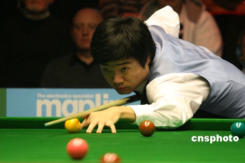當?shù)貢r間12月12日晚,中國斯諾克選手丁俊暉經過十六局苦戰(zhàn),最終憾負目前世界排名第一的肖恩·墨菲,無緣英國錦標賽四強。比賽非常激烈,兩人比分緊咬。中新社發(fā) 李鵬 攝