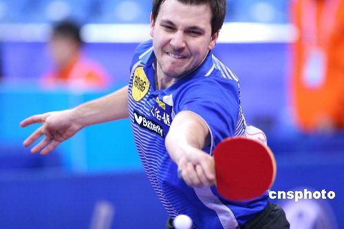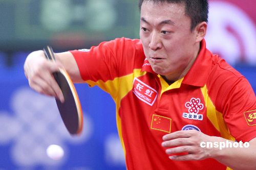 12月15日,2007年國際乒聯(lián)職業(yè)巡回賽總決賽男子單打1/4決賽在北京大學體育館進行。在東道主選手馬琳與德國悍將波爾的較量中,馬琳歷經(jīng)六局苦戰(zhàn),最終4-2力克波爾。中新社發(fā) 富田 攝