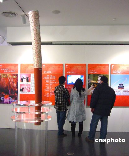 12月22日,《點(diǎn)燃大眾激情 傳遞奧運(yùn)夢想》2008年奧運(yùn)火炬接力主題展在北京東方廣場開幕,展覽以繪畫、實(shí)物、多媒體等形式介紹了奧運(yùn)火炬的發(fā)展歷程,并通過圖文結(jié)合展示了2008年奧運(yùn)會火炬?zhèn)鬟f路線等信息。中新社發(fā) 玉龍 攝