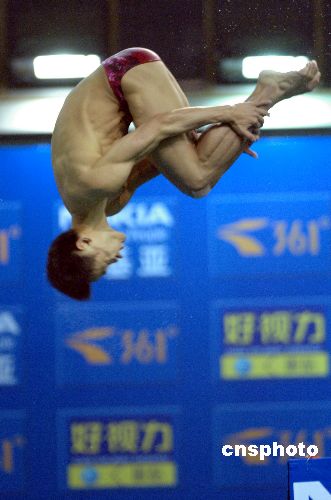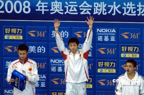 1月10日,2008年奧運會跳水選拔賽(濟(jì)南站)全部結(jié)束。在最后一天的比賽中,北京選手林躍獲得男子10米跳臺冠軍。奧運冠軍胡佳僅獲得第4名。中新社發(fā) 張侃 攝