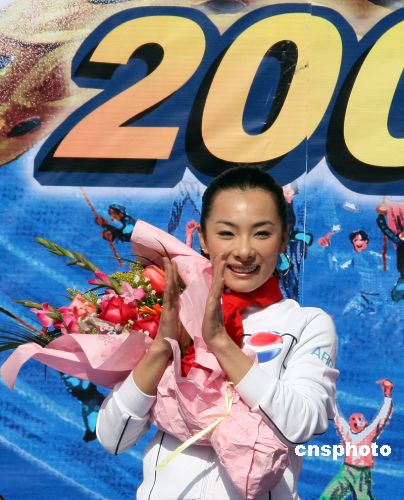 1月20日上午,中國(guó)體操世界冠軍劉璇在廣東惠州市帶領(lǐng)上萬(wàn)市民歡呼齊跳“愛(ài)中國(guó),中國(guó)隊(duì)加油!”集體舞。由惠州鵝城攝影學(xué)會(huì)主辦的“2008舞動(dòng)大拇指,最愛(ài)中國(guó)年”攝影大賽同時(shí)開(kāi)始,劉璇親自按動(dòng)相機(jī)快門(mén),主持?jǐn)z影大賽開(kāi)鏡儀式,并為惠州人民題寫(xiě)新年祝詞。中新社發(fā) 宋秀杰 攝