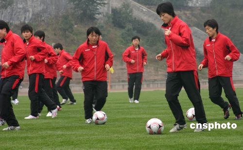 2月16日下午,朝鮮女足在永川備戰(zhàn)四國(guó)賽。當(dāng)日,朝鮮女足主教練金光明帶領(lǐng)21名弟子出現(xiàn)在重慶財(cái)經(jīng)職業(yè)學(xué)院足球訓(xùn)練場(chǎng)進(jìn)行首場(chǎng)集訓(xùn)。據(jù)了解,奪冠呼聲高的朝鮮女足15日晚7時(shí)多抵達(dá)下塌的永川名豪國(guó)際酒店,她們是最后一支抵達(dá)永川的球隊(duì)。2008東亞女足錦標(biāo)賽決賽將于2月18日在永川體育中心開賽。中新社發(fā) 陳仕川 攝