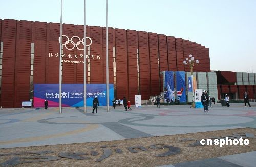 2月26日,“好運(yùn)北京”2008跆拳道國(guó)際邀請(qǐng)賽在北京科技大學(xué)開幕,本次比賽共有來自27個(gè)國(guó)家和地區(qū)的運(yùn)動(dòng)隊(duì)報(bào)名參賽。圖為北京科技大學(xué)體育館,該場(chǎng)館將承擔(dān)奧運(yùn)會(huì)柔道、跆拳道和殘奧會(huì)輪椅籃球、輪椅橄欖球四個(gè)項(xiàng)目的比賽。中新社發(fā) 富田 攝