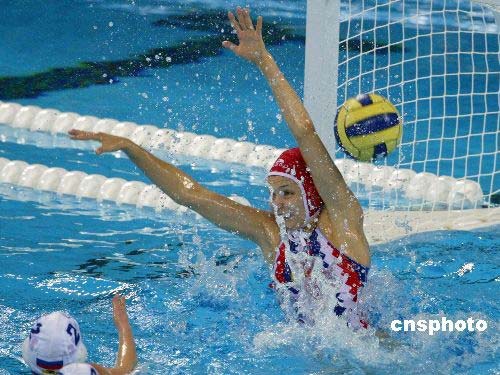 3月18日,十七年前建成的北京奧林匹克體育中心內的英東游泳館(由已故香港愛國人士霍英東先生出資修建)經(jīng)過一年多的整修后,迎來北京奧運會測試賽!昂眠\北京”2008中國水球公開賽在奧體中心英東游泳館打響了揭幕戰(zhàn)。首日進行的是女子組比賽,東道主中國隊以6-9的比分,負于了悉尼奧運會冠軍澳大利亞隊。中新社發(fā) 富田 攝