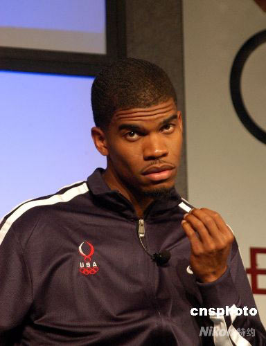 4月16日,美國110米欄名將特拉梅爾在芝加哥出席美國奧運代表隊新聞峰會時表示,去北京參加奧運會的目標仍是奪冠。中新社發(fā) 李靜 攝