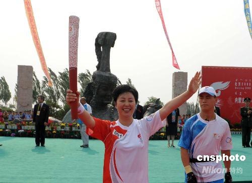 7月10日,奧運火炬開始在著名的紅山文化起源地內(nèi)蒙古赤峰市進行傳遞。傳遞線路全長6.1公里,起點為車伯爾民俗園。第一棒火炬手為赤峰第一任旅游局局長、全國旅游系統(tǒng)先進個人娜日蘇。 中新社發(fā) 廖攀 攝