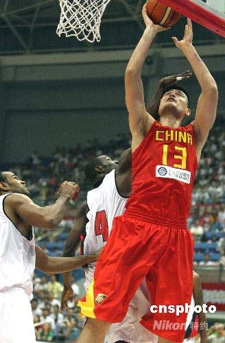 7月19日下午,中國男籃在杭州舉行的2008斯坦科維奇洲際杯籃球賽的比賽中迎戰(zhàn)北京奧運(yùn)會同組對手安哥拉隊(duì),姚明繼續(xù)替補(bǔ)出場砍下16分,但是中國隊(duì)外線啞火失誤過多以71比72負(fù)于對手。中新社發(fā) 任晨鳴 攝