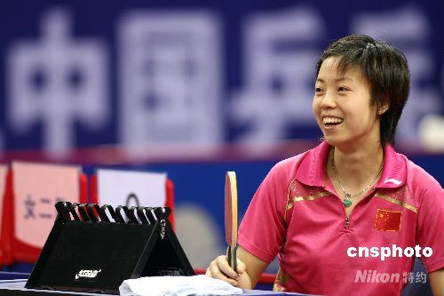7月28日,中國乒乓球隊(duì)備戰(zhàn)奧運(yùn)熱身賽在無錫體育中心拉開帷幕。男子團(tuán)體分4隊(duì)進(jìn)行淘汰賽,女子團(tuán)體分4個隊(duì)進(jìn)行單循環(huán)比賽。此次熱身賽還設(shè)立了男子單打擂臺賽。圖為張怡寧比賽前在裁判席上笑看隊(duì)友訓(xùn)練。中新社發(fā) 盛佳鵬 攝