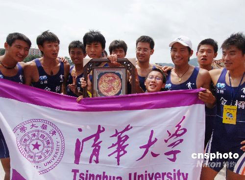 圖為獲得海峽兩岸高校賽艇龍巖邀請賽第一名的清華大學(xué)賽艇隊(duì)隊(duì)員手捧獎匾合影。