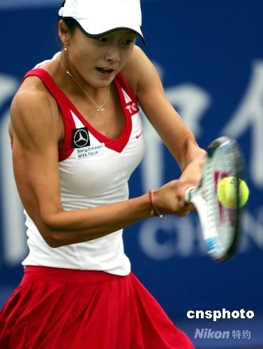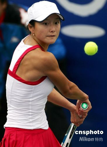 9月23日,中國選手晏紫在2008中國網(wǎng)球公開賽女子單打首輪比賽中,以0比2不敵日本選手杉山愛,被淘汰出局。 中新社發(fā) 富田 攝