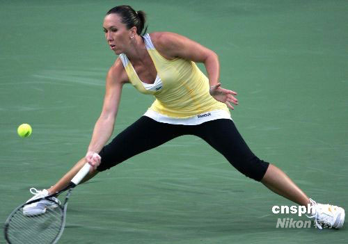 9月27日,2008年中國網(wǎng)球公開賽開始女單半決賽爭奪。頭號種子塞爾維亞美女揚(yáng)科維奇以6-4、2-6、6-4的比分戰(zhàn)勝俄羅斯紅粉5號種子茲沃娜列娃,率先晉級決賽。中新社發(fā) 富田 攝