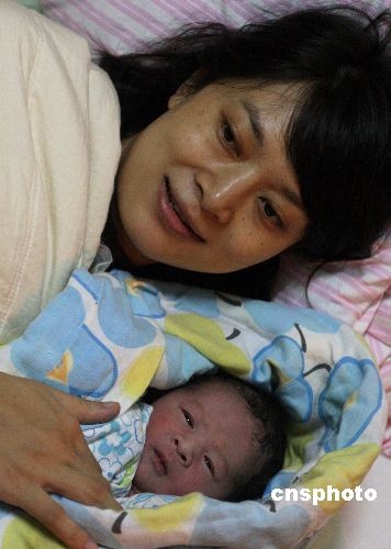 已故中國“飛車王”徐浪之子――徐濤(父親生前命名),2008年10月15日17時零3分順利降生于浙江省武義縣第一人民醫(yī)院,體重3600克。母親寸麗珍 (云南白族)與兒子狀態(tài)良好。時值2008年全國摩托車越野錦標賽首次在此地舉辦之日。中新社發(fā) 趙振清 攝