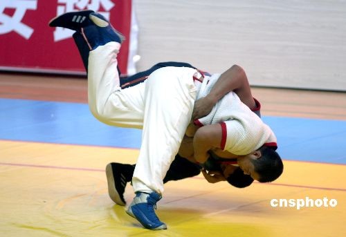 10月28日上午,第六屆全國(guó)農(nóng)民運(yùn)動(dòng)會(huì)中國(guó)式摔跤比賽在福建省泉州市體育中心僑鄉(xiāng)體育館舉行。在為期四天的比賽中,來(lái)自全國(guó)17支代表隊(duì)的80名摔跤好手將為10個(gè)級(jí)別的“跤王”展開(kāi)激烈爭(zhēng)奪。 中新社發(fā) 王東明 攝