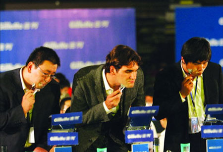 作為某剃須刀產(chǎn)品的形象代言人,費(fèi)德勒去年就曾經(jīng)在大師杯開賽前引領(lǐng)千人規(guī)模的少年郎完成成人禮。對(duì)今年成績(jī)欠佳的費(fèi)天王來(lái)說(shuō),再次來(lái)到上海意味著“重新回到這個(gè)充滿了幸運(yùn)的城市”,而再次率千余少年以剃須形式完成成人禮同樣具有不凡的意義:“雖然,我已經(jīng)記不清自己第一次站在鏡子前剃須是哪一天的事了,但直到現(xiàn)在,我都把這當(dāng)作是男人每天認(rèn)真審視自己的一個(gè)過(guò)程。完美的剃須會(huì)使男人變得更自信,對(duì)一個(gè)男孩來(lái)說(shuō),第一次剃須顯然意味著蛻變,這是一個(gè)特殊的時(shí)刻,一個(gè)男孩從此變成了男人!