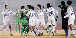 在昨晚的“京津?qū)υ挕敝校鲌鲎鲬?zhàn)的北京國安隊2比2戰(zhàn)平天津泰達隊,雙方各得1分。在比賽的最后階段,濃重的火藥味和兩度群體沖突也給這場比賽帶來了不和諧音。比賽即將結(jié)束時,郭輝和天津隊譚望嵩之間發(fā)生了肢體接觸。據(jù)郭輝本人透露,當(dāng)時譚望嵩試圖對他飛鏟,在被郭輝躲開后,譚望嵩破口大罵。更不和諧的一幕發(fā)生在賽后,天津隊球員走下場時,以隊長曹陽為首,高舉雙手向看臺上的北京球迷豎起了中指。記者親眼看到,直到走進球員通道,曹陽才將高舉的雙臂放下。(記者 周蕭)