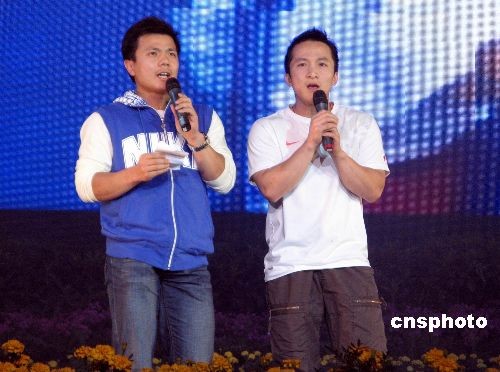11月17日晚,在“客家祖地”福建龍巖舉行的第五屆中國龍巖投資項目洽談會文藝晚會上,福建龍巖籍奧運冠軍張湘祥、石智勇同臺為海內外鄉(xiāng)親深情演繹一曲《朋友》。中新社發(fā) 張彩林 攝