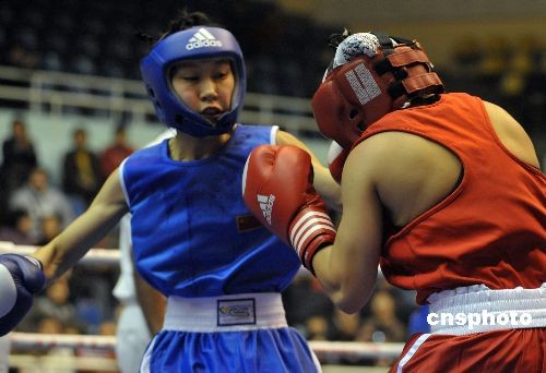 11月22日下午,2008世界女子拳擊錦標(biāo)賽在寧波體育中心雅戈?duì)栿w育館拉開戰(zhàn)幕,中國隊(duì)的李思源在與美國的比賽中,戰(zhàn)勝對(duì)手,取得第一場(chǎng)勝利。當(dāng)天共進(jìn)行了26場(chǎng)預(yù)賽。中新社發(fā) 李巖宏 攝
