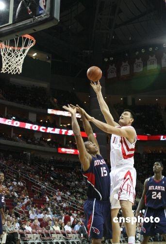 中國球員姚明所在的NBA火箭隊(duì)12月9日在休斯頓主場迎戰(zhàn)亞特蘭大老鷹隊(duì)。最后火箭以92-84取勝老鷹,贏得背靠背勝利的同時(shí)終止連敗。姚明拿下24分19個(gè)籃板,為全隊(duì)最高。中新社發(fā) 歐文 攝