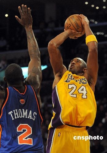 當地時間12月16日晚,NBA洛杉磯湖人隊主場迎戰(zhàn)紐約尼克斯隊,結果上演驚險大逆轉,以116比114險勝對手。其中湖人科比·布萊恩特一人拿下28分。中新社發(fā) 張煒 攝