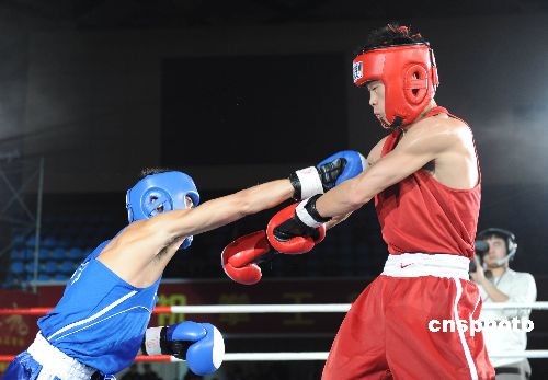十二月十九日晚,首屆中國—東盟(十加三)拳王爭(zhēng)霸賽在中國廣西南寧市開打。來自越南、緬甸、柬埔寨、泰國、菲律賓、印度尼西亞等東盟六國和中國、韓國共九支隊(duì)伍四十名拳壇高手將分別參加八個(gè)級(jí)別的比賽。當(dāng)天晚上所進(jìn)行的四場(chǎng)比賽,中國隊(duì)獲得了三場(chǎng)比賽的勝利。中新社發(fā) 蔣雪林 攝