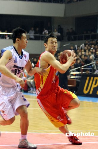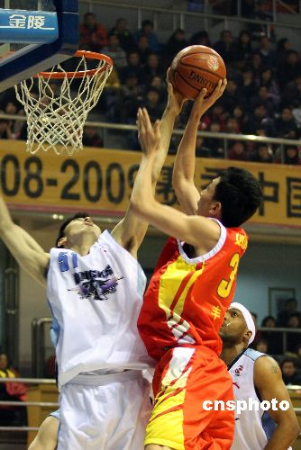 1月16日晚,北京金隅主場對陣八一雙鹿電池隊(duì),八一隊(duì)缺少主教練阿的江的場邊指導(dǎo),王治郅因傷未上場。最終北京金隅以96比81擊敗八一取得三連勝。中新社發(fā) 王韶驊 攝