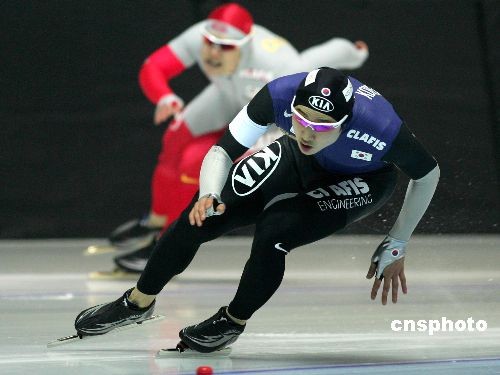 2月19日,世界大學(xué)生冬季運(yùn)動(dòng)會(huì)在結(jié)束女子首金爭(zhēng)奪后,男子500米速度滑冰的比賽也產(chǎn)生了金牌。韓國(guó)選手選手李康爽以?xún)奢?9秒82的成績(jī)問(wèn)鼎冠軍,為韓國(guó)隊(duì)再添一金。中國(guó)隊(duì)賽前對(duì)金牌志在必得的于鳳桐落后0.05秒,屈居亞軍,銅牌則最終歸屬于韓國(guó)選手毛太范,成績(jī)?yōu)?0秒53。中新社發(fā) 富田 攝