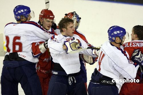2月25日晚最后一場(chǎng)男子冰球小組賽由俄羅斯對(duì)陣斯洛伐克,整場(chǎng)比賽火爆激烈,最終俄羅斯隊(duì)9:3取勝,保持小組不敗進(jìn)入半決賽。中新社發(fā) 王韶驊 攝