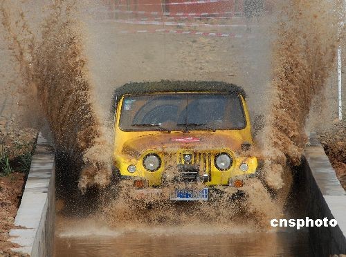 2009年4月29日,“景陽春杯”越野車王爭霸賽在發(fā)動(dòng)機(jī)的咆哮聲中拉開帷幕。本次大賽的最大魅力在于極強(qiáng)的觀賞性和參與性,賽手需要通過越野賽道內(nèi)36組障礙,尤其需要突破場地內(nèi)極具粘性的泥地,是通常項(xiàng)目無法比擬的。“景陽春杯”越野車王爭霸賽,以宣傳賽事以及山東文化產(chǎn)業(yè)及旅游產(chǎn)業(yè)的繁榮景象為主題,全方位展示汽車文化的獨(dú)有魅力及無限的發(fā)展空間!熬瓣柎罕痹揭败囃鯛幇再,系山東省體育總局主辦, 安丘市人民政府、山東青云國際旅游度假區(qū)股份有限公司承辦的跨度為五個(gè)月的大型賽事。中新社發(fā) 王曉光 攝