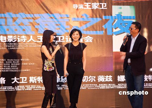 10月25日,第十六屆中國金雞白花電影節(jié)系列活動之“藍(lán)莓之夜——電影詩人王家衛(wèi)導(dǎo)演記者會”在美麗的金雞湖畔舉行。香港著名導(dǎo)演、編劇及監(jiān)制王家衛(wèi)攜首部外語片《藍(lán)莓之夜》蒞臨現(xiàn)場,作為第十六屆金雞百花電影節(jié)娛樂形象大使的劉嘉玲也來為王家衛(wèi)導(dǎo)演助陣,為本屆電影節(jié)增添璀璨星光。中新社發(fā) 邱勇 攝